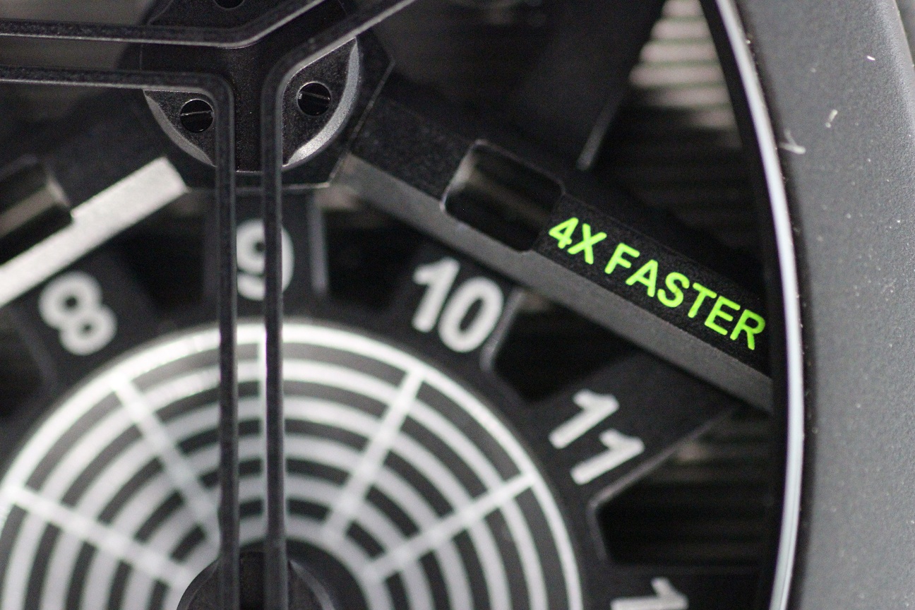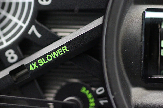 Some closeups showing you the green accents on the dial for the time speed setting.