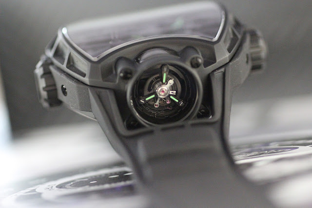 The open back look nearly unspectaular considering the level of complication of this timepiece which belongs to the Masterpiece collection at Hublot. It is only the second Masterpiece Hublot has created. The first one had a 10 day powerreserve. As you can see on the caseback, the watch is limited to 50 pieces only. The movement is handwound.