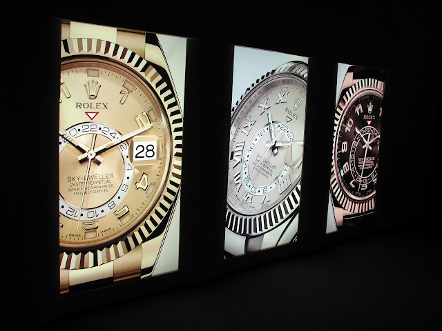 Until some time past noon today Rolex was hiding their new watches. The photos on the back were covered, and the watches in the windows had a covering as you can see.