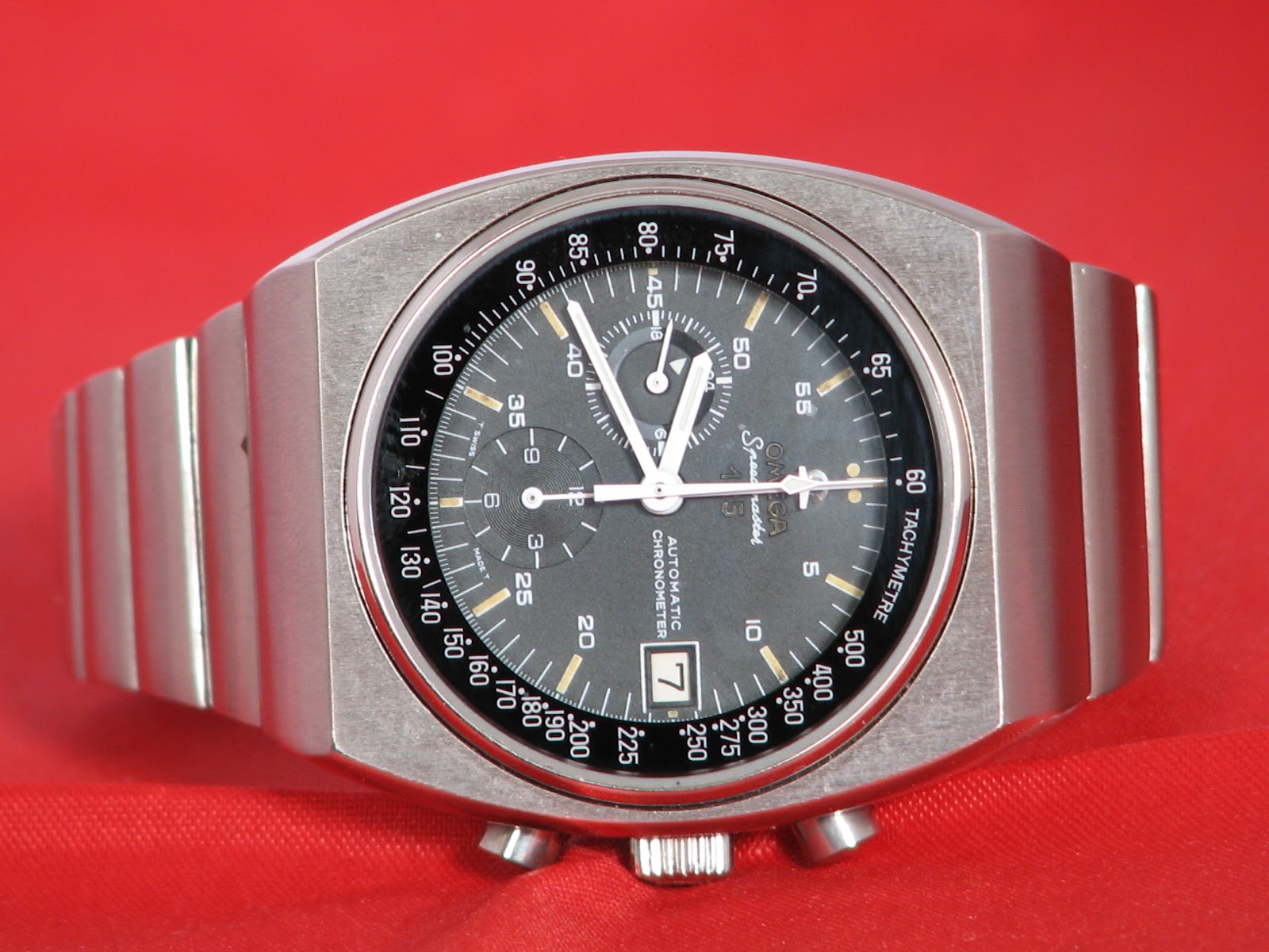 Omega Speedmaster 125, a big bold timepiece with an amazing integrated steel bracelet. This is a really cool watch.