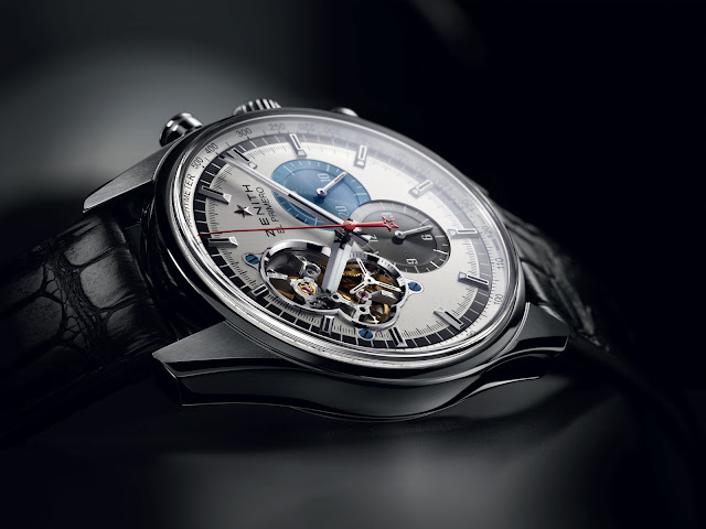 | The new El Primero Chronomaster 1969 Chronograph is pure Zenith. For the first time, the original colours combine with the opening in the dial, now a signature feature, to offer a glimpse of the perfectly synchronised beating heart and the magic of the wheels in motion. Indeed, the two chronograph counters – 30-minute at 3 o’clock, 12-hour at 6 o’clock – borrow the midnight blue and anthracite grey of the 1969 model. Again with aesthetics in mind, Zenith’s master watchmakers have gone as far as to rethink the movement construction, and move the regulating organ, vibrating ten times a second, to the edge of the movement. This new automatic chrono calibre – the El Primero 4061, designed, developed and made by Zenith – completes this contemporary, classic timepiece. | ||||||||||