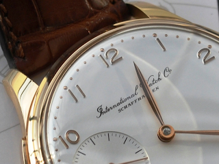 This is a pretty rare IWC 5240-05 Portugieser Minute Repeater in rose Gold. It still is the original version based on caliber 952. Caliber 952 has a bridge layout and the small second at 9 o’clock. The dial is similar to the Jubilee Portugieser watch with thread-writing.