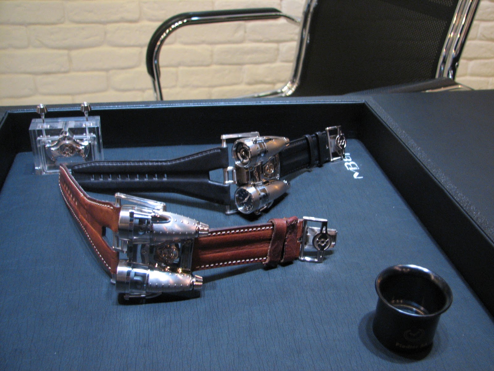 I quickly realized that not only the watches are unique pieces of art as as well as machines but that there is a deep inspiration of machines that goes throughout the gallery, from the watches to the pieces of art that are displayed and also for sale.