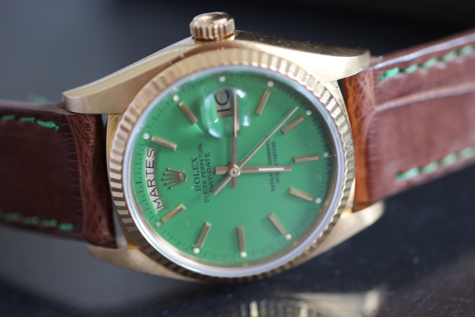 Rolex Day Date Green Stella Dial Ref. 18038 Loading... 26. January 2013 By Boris Pjanic Stella dials appear to be en vogue at the moment. Highly in demand. They are fashion statement for men and ladies alike, while being expression of taste and style. Spread the love